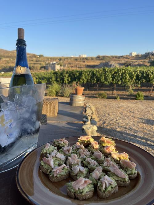 After an introduction to the estate and to our wines, you will find a set table waiting for you, filled with an array of Naxian products for your group to share: cheese, homemade sourdough bread, seasonal vegetables, olives and a variety of grape-derived products of our own making.